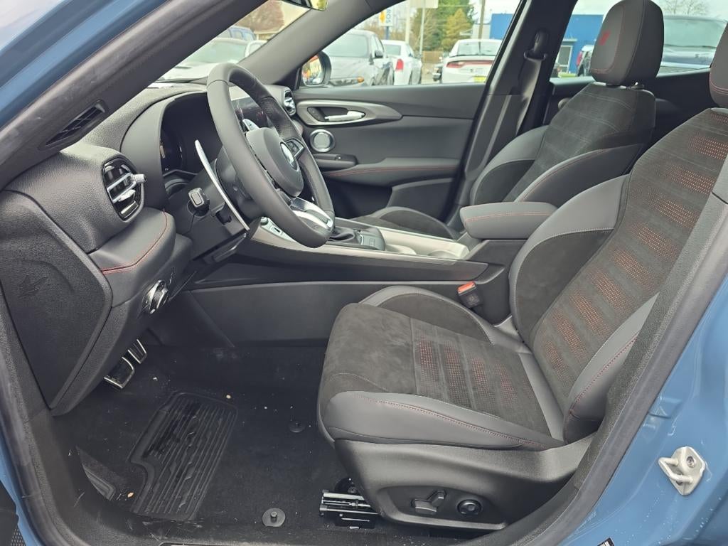 - Alcantara simulated suede and leather front seat upholstery