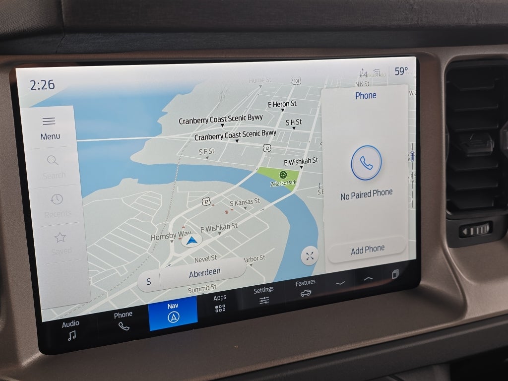 Never get into a cold vehicle again with the remote start feature on this model. This unit has auto-adjust speed for safe following. This model offers Apple CarPlay for seamless connectivity. The leather seats in the vehicle are a must for buyers looking for comfort, durability, and style. This vehicle's Cross-Traffic Alert: Safeguarding you from unexpected traffic when reversing. The vehicle comes equipped with Android Auto for seamless smartphone integration on the road. The Ford Bronco features a hands-free Bluetooth® phone system. Protect it from unwanted accidents with a cutting edge backup camera system. An off-road package is equipped on this model. The rear parking assist technology on the vehicle will put you at ease when reversing. The system alerts you as you get closer to an obstruction. The vehicle is pure luxury with a heated steering wheel. The installed navigation system will keep you on the right path. Set the temperature exactly where you are most comfortable in it. The fan speed and temperature will automatically adjust to maintain your preferred zone climate.