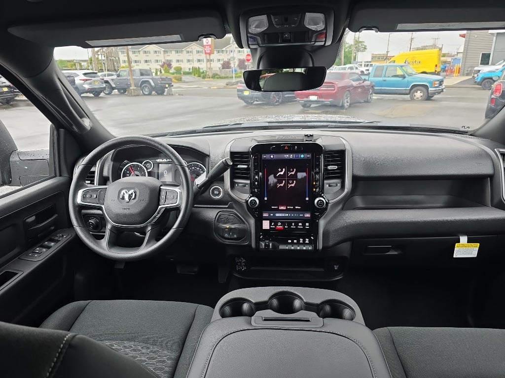 Quick Order Package 24A Tradesman. Tradesman Level 2 Equipment Group: Convenience Group; Google Android Auto; SiriusXM Radio Service; For Details Visit DriveUconnect.com; For More Info. Call 800-643-2112; Integrated Voice Command with Bluetooth®; Emergency Vehicle Alert System (EVAS); Manual Folding Exterior Mirrors; 12" Touchscreen Display; Mirror Running Lights; Exterior 115V AC Outlet; Alexa Built-In; Apple CarPlay; Power-Adjustable Convex Aux Mirrors; Cloth 40/20/40 Bench Seat; Disassociated Touchscreen Display; Matte Black Mesh with Chrome Grille; 115-Volt Auxiliary Front Power Outlet; Center Hub; Rear View Auto Dim Mirror; Rear Power Sliding Window; Connectivity - US/Canada; Tinted Acoustic Windshield Glass; GPS Navigation; 4G LTE Wi-Fi Hot Spot; GPS Antenna Input; Bright Rear Bumper; Exterior Mirrors with Heating Element; MOPAR Black Tubular Side Steps; Chrome Grille Surround; SiriusXM with 360L; Global Telematics Box Module; Connected Travel and Traffic Services; Black Exterior Mirrors; Carpet Floor Covering; 18" X 8.0" Steel Chrome Clad Wheels; Off-Road Information Pages; Selectable Tire Fill Alert; Trailer Tow Pages; 400W Inverter; HD Radio; Power Heat Fold Telescopic Mirrors; Uconnect 5 Navigation with 12.0" Display Radio; Exterior Mirrors with Supplemental Signals; Exterior Mirrors Courtesy Lamps; Air Conditioning ATC with Dual Zone Control; Manuarl Telescoping Mirrors; Power Adjust Mirrors; Front and Rear Floor Mats; ParkSense Front/rear Park Assist System; Bright Front Bumper. MOPAR Black Tubular Side Steps. 5th Wheel/gooseneck Towing Prep Group. Cloth 40/20/40 Bench Seat. 50 Gallon Fuel Tank. Diamond Black Crystal PC. MOPAR Front and Rear Rubber Floor Mats. **Equipment listed is based on original vehicle build and subject to change. Please confirm the accuracy of the included equipment by calling the dealer prior to purchase.**