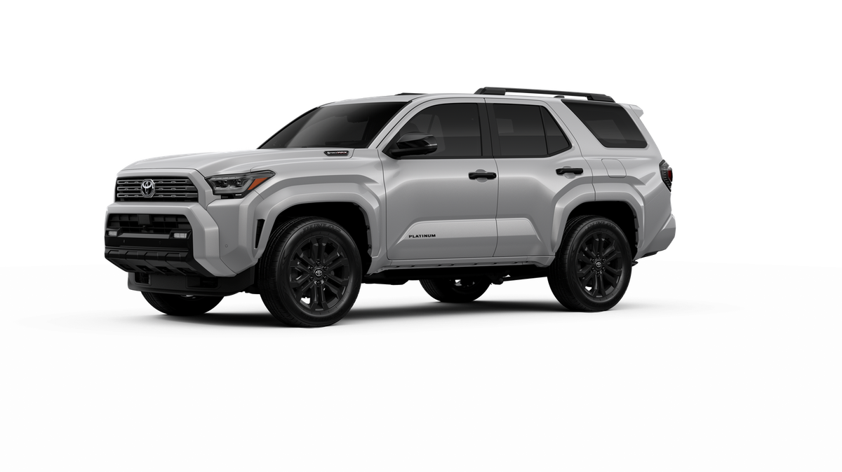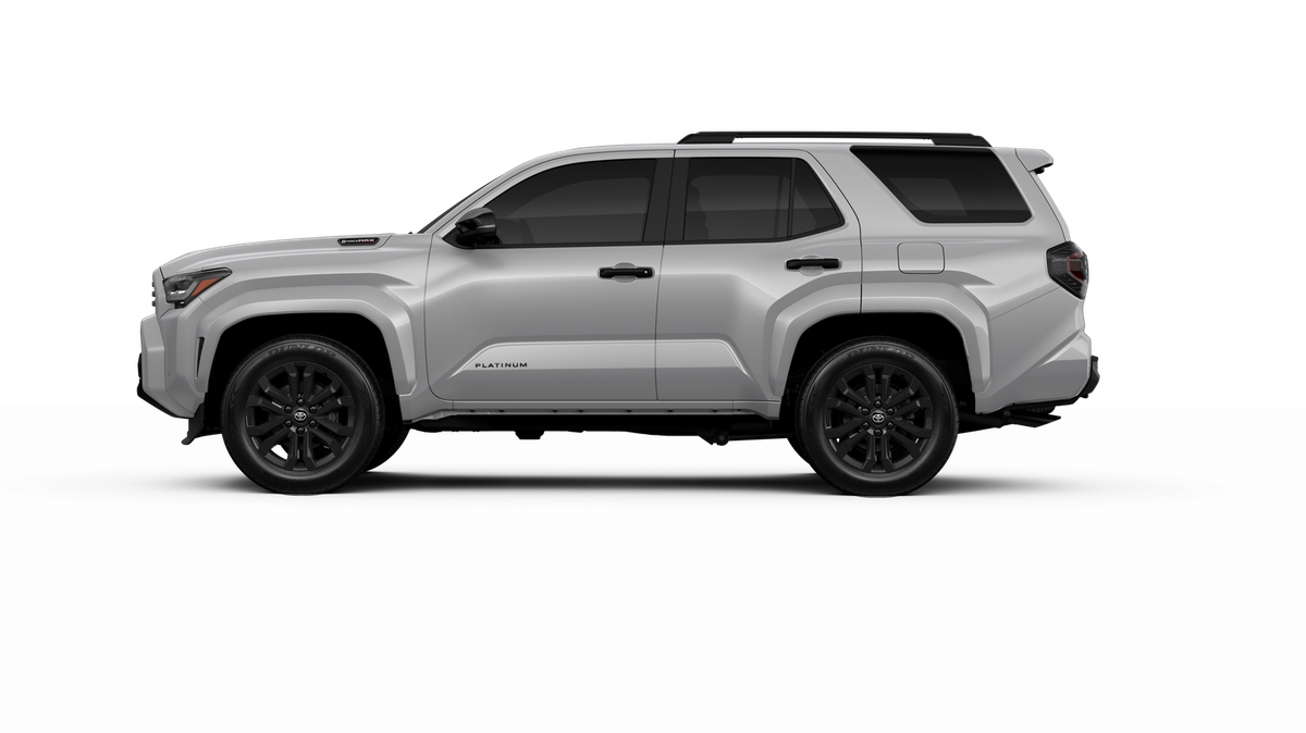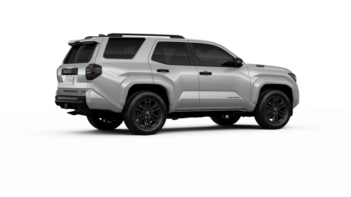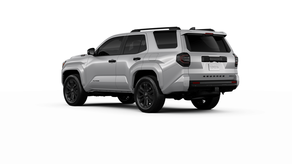 - Dark-chrome tri-bar grille; gloss-black mirror caps, and door handles, color-keyed overfenders and rear spoiler; gloss-black "PLATINUM" and "4RUNNER" badges