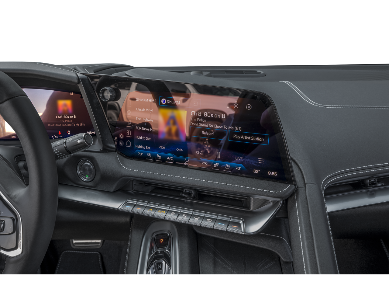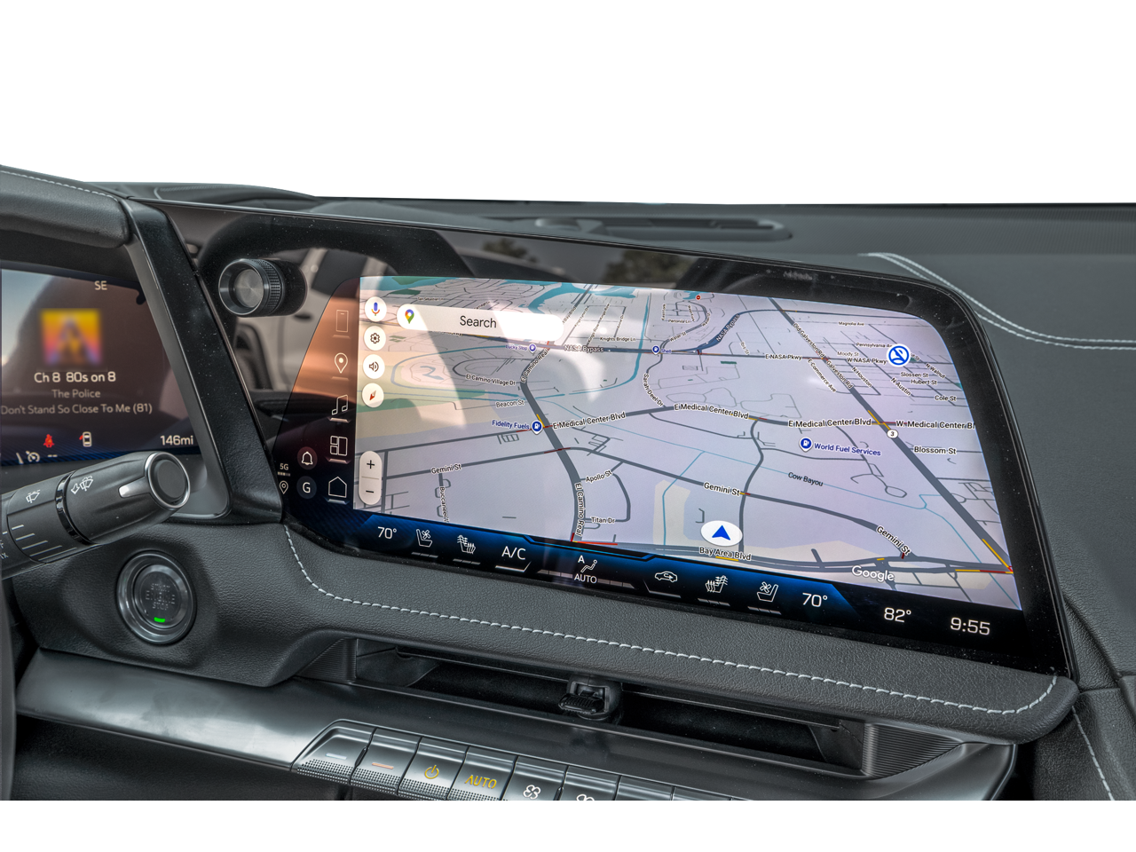 - Infotainment system with Google Built-In 12.7" diagonal center console display, 14" diagonal Driver Information Center, and 6.6" diagonal auxiliary touchscreen, with Google Built-In compatibility, including navigation capability, connected apps, Natural Voice Recognition. Phone integration for Wireless Apple CarPlay/Wireless Android Auto for compatible phones