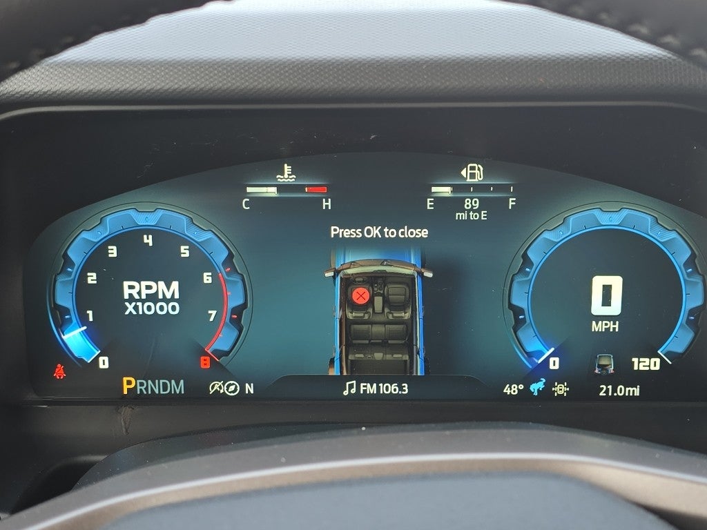 Black Appearance Package: Black-Painted Molded-In-color Grille; Black Molded-In-color Sideview Mirror Caps; Black Molded-In-color Door Handles. Equipment Group 334A Lux Package: 17" Carbonized Gray-Painted Aluminum Wheel; Rear Parking Sensors; Pro Power Onboard - 400W; Dual Smart Charging USB Ports; Front Row Heated Seats; Driver and Front Passenger Illuminated Sliding Visor Vanity Mirrors; Evasive Steering Assist; Adaptive Cruise Control; Heated Steering Wheel; Information on Demand Panel; B&O Sound System by Bang and Olufsen; Dual-Zone Electronic Automatic Temperature Control; Connected Navigation; Front Parking Sensors; 360-Degree Camera; LT285/70R17 Rugged-Terrain R/T Tires; Ambient Footwell Lighting; Remote Start System; 2-Door Intelligent Access with Lock/unlock; Sideview Mirrors. Ford Co-Pilot360: Auto High-Beam Headlamps; Rear View Camera; Pre-Collision Assist with Automatic Emergency Braking; Blind Spot Information System (BLIS); Lane-Keeping System. Sasquatch Package: High Clearance Suspension; Front Stabilizer Disconnect; Position-Sensitive Bilstein Shock Absorbers. Shadow Black Painted Hard Top. Leather-Trimmed/vinyl Bucket Seats. Front Stabilizer Disconnect. Raptor-Style Running Board. Trailer Tow Package. Carbonized Gray Metallic. Hard Top Sound Deadening Headliner. **Equipment listed is based on original vehicle build and subject to change. Please confirm the accuracy of the included equipment by calling the dealer prior to purchase.**