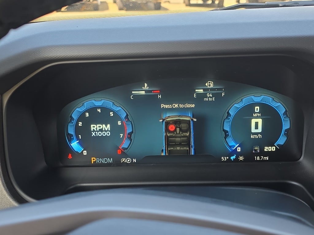 Black Appearance Package: Black-Painted Molded-In-color Grille; Black Molded-In-color Sideview Mirror Caps; Black Molded-In-color Door Handles. Equipment Group 334A Lux Package: 17" Carbonized Gray-Painted Aluminum Wheel; Rear Parking Sensors; Pro Power Onboard - 400W; Dual Smart Charging USB Ports; Front Row Heated Seats; Driver and Front Passenger Illuminated Sliding Visor Vanity Mirrors; Evasive Steering Assist; Adaptive Cruise Control; Heated Steering Wheel; Information on Demand Panel; B&O Sound System by Bang and Olufsen; Dual-Zone Electronic Automatic Temperature Control; Connected Navigation; Front Parking Sensors; 360-Degree Camera; LT285/70R17 Rugged-Terrain R/T Tires; Ambient Footwell Lighting; Remote Start System; 2-Door Intelligent Access with Lock/unlock; Sideview Mirrors. Ford Co-Pilot360: Auto High-Beam Headlamps; Rear View Camera; Pre-Collision Assist with Automatic Emergency Braking; Blind Spot Information System (BLIS); Lane-Keeping System. Sasquatch Package: High Clearance Suspension; Front Stabilizer Disconnect; Position-Sensitive Bilstein Shock Absorbers. Shadow Black Painted Hard Top. Leather-Trimmed/vinyl Bucket Seats. Front Stabilizer Disconnect. Raptor-Style Running Board. Trailer Tow Package. Hard Top Sound Deadening Headliner. **Equipment listed is based on original vehicle build and subject to change. Please confirm the accuracy of the included equipment by calling the dealer prior to purchase.**