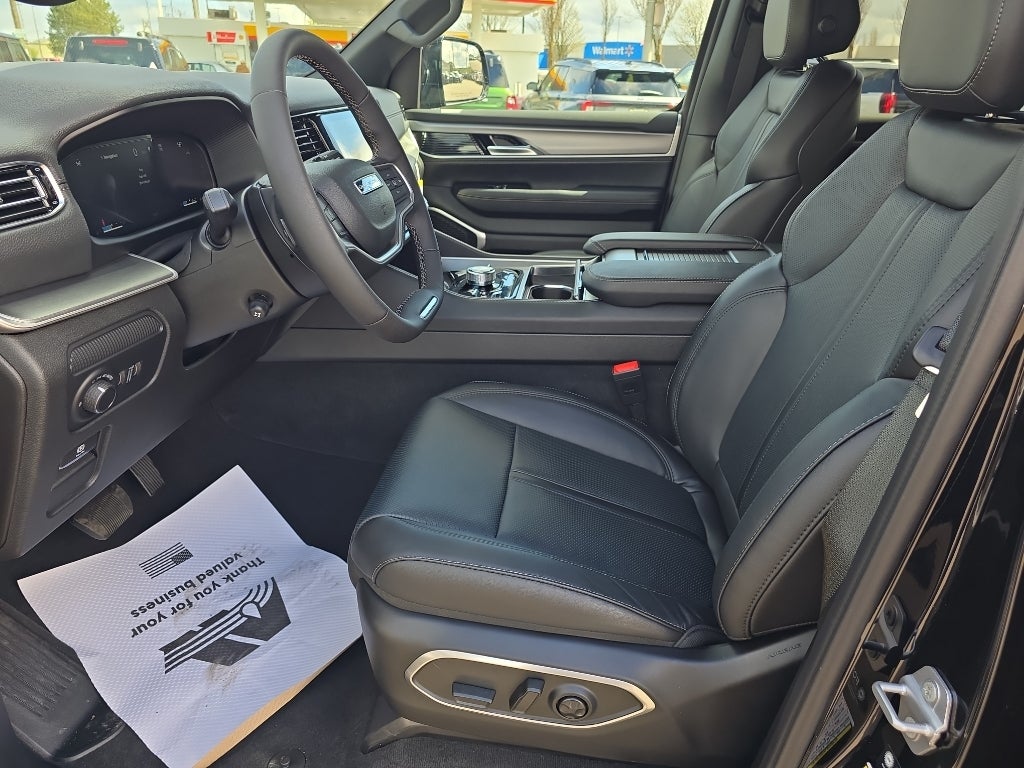 The leather seats in the vehicle are a must for buyers looking for comfort, durability, and style. Protect this 2026 Jeep Grand Wagoneer from unwanted accidents with a cutting edge backup camera system. This Jeep Grand Wagoneer is pure luxury with a heated steering wheel. The installed navigation system will keep you on the right path. Bluetooth® technology is built into this unit, keeping your hands on the steering wheel and your focus on the road. This 2026 Jeep Grand Wagoneer 's Forward Collision Warning system alerts the driver to potential front-end collisions, enhancing safety. Never get into a cold vehicle again with the remote start feature on this Jeep Grand Wagoneer. The vehicle offers Apple CarPlay for seamless connectivity. This unit has automated speed control that adjusts to maintain a safe following distance, enhancing highway driving convenience. The vehicle offers Android Auto for seamless smartphone integration. It has four wheel drive capabilities.