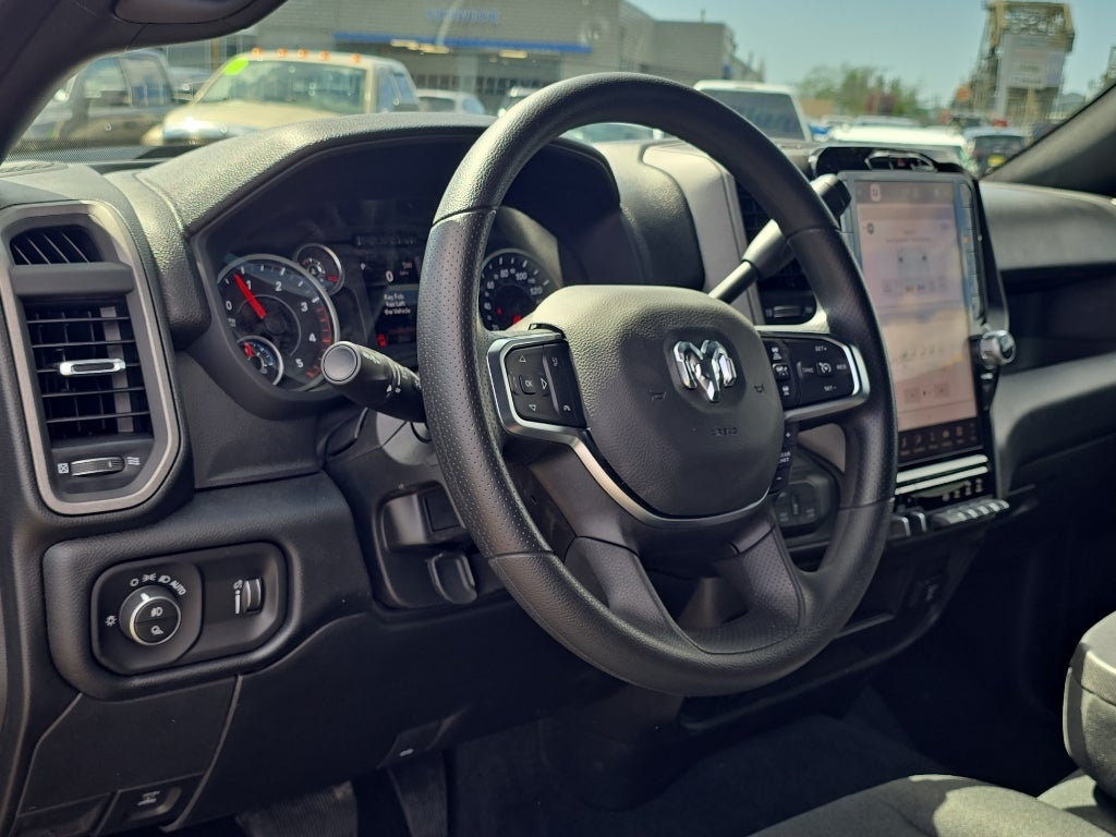 Tradesman Level 2A Equipment Group: Convenience Group; Google Android Auto; SiriusXM Radio Service; For Details Visit DriveUconnect.com; 17" X 6.0" Steel Chrome Clad Wheels; For More Info. Call 800-643-2112; Integrated Voice Command with Bluetooth®; Emergency Vehicle Alert System (EVAS); Manual Folding Exterior Mirrors; 12" Touchscreen Display; Mirror Running Lights; Exterior 115V AC Outlet; Alexa Built-In; Apple CarPlay; Power-Adjustable Convex Aux Mirrors; Cloth 40/20/40 Bench Seat; Disassociated Touchscreen Display; Bright Wheel Skins; Matte Black Mesh with Chrome Grille; 115-Volt Auxiliary Front Power Outlet; Center Hub; Rear View Auto Dim Mirror; Rear Power Sliding Window; Connectivity - US/Canada; Tinted Acoustic Windshield Glass; GPS Navigation; 4G LTE Wi-Fi Hot Spot; GPS Antenna Input; Bright Rear Bumper; Exterior Mirrors with Heating Element; Chrome Grille Surround; MOPAR Black Tubular Side Steps; SiriusXM with 360L; Global Telematics Box Module; Connected Travel and Traffic Services; Black Exterior Mirrors; Carpet Floor Covering; Off-Road Information Pages; Selectable Tire Fill Alert; Trailer Tow Pages; 400W Inverter; HD Radio; Power Heat Fold Telescopic Mirrors; Uconnect 5 Navigation with 12.0" Display Radio; Exterior Mirrors with Supplemental Signals; Exterior Mirrors Courtesy Lamps; Air Conditioning ATC with Dual Zone Control; Manual Telescoping Mirrors; Power Adjust Mirrors; Front and Rear Floor Mats; Bright Front Bumper; ParkSense Front/rear Park Assist System. Max Tow Package: Center Stop Lamp with Cargo View Camera; 5th Wheel/gooseneck Towing Prep Group. Quick Order Package 24A Tradesman. Dual Rear Wheels: Clearance Lamps; LT235/80R17E BSW All Season Tires; 17" Steel Spare Wheel; Box and Rear Fender Clearance Lamps; 6000# Front Axle with Hub Extension; Nexen Brand Tires; Black Wheel Center Hub; 14. 000 Lb GVWR; Rear Wheelhouse Liners. 5th Wheel/gooseneck Towing Prep Group. MOPAR Black Tubular Side Steps. Cloth 40/20/40 Bench Seat. 50 Gallon Fuel Tank. Granite Crystal Met CC. Rear Wheelhouse Liners. Clearance Lamps. **Equipment listed is based on original vehicle build and subject to change. Please confirm the accuracy of the included equipment by calling the dealer prior to purchase.**