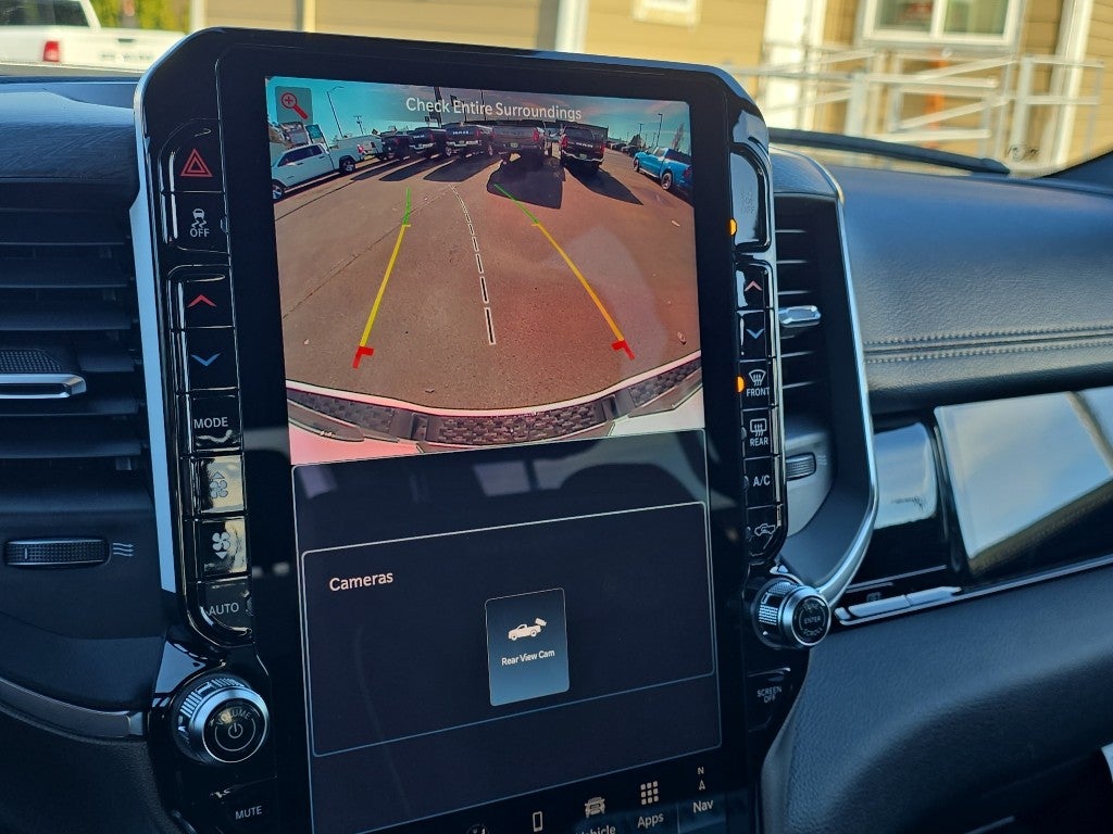 Quick Order Package 27H Laramie. Laramie Level 2 Equipment Group: SiriusXM Radio Service; USB Host Flip; Rain Sensitive Windshield Wipers; 14.4" Touchscreen Display; Integrated Center Stack Radio; Front Passenger Interactive Display; Integrated Voice Command with Bluetooth®; Connectivity - US/Canada; Uconnect 5 Nav with 14.4" Display; GPS Navigation; 4G LTE Wi-Fi Hot Spot; Harman/kardon 19 Speaker Premium Sound; SiriusXM with 360L; Connected Travel and Traffic Services; Cluster 12" TFT Color Display; Power Tailgate. Sport Appearance Package: Accent Color Premium Power Mirrors; Exterior Mirrors with Supplemental Signals; Sport Performance Hood; Exterior Mirrors Courtesy Lamps; RAM Grille Badge - Chrome; Auto Power-Folding Mirrors; Exterior Mirrors with Heating Element; Auto Dim Exterior Driver Mirror; Exterior Mirrors with Memory; Black Interior Accents; Body Color Front Bumper; Convex Wide-Angle Exterior Mirror Insert; Body Color Rear Bumper with Step Pads; Bridgestone Brand Tires; Grille Surround 3 Body Color Tex 2 Black; Black Painted Exterior Mirrors Caps. 22" X 9" Forged Aluminum Wheels. Dual-Pane Panoramic Sunroof. Power Deployable Running Boards. Anti-Spin Differential Rear Axle. Trailer Brake Control. MOPAR Front and Rear Rubber Floor Mats. 3.92 Rear Axle Ratio. **Equipment listed is based on original vehicle build and subject to change. Please confirm the accuracy of the included equipment by calling the dealer prior to purchase.**