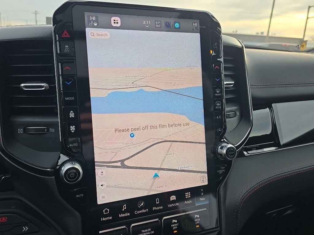 Bed Utility Group: MOPAR Deployable Bed Step; MOPAR 4 Adjustable Cargo Tie-Down Hooks; Exterior 115V AC Outlet. Quick Order Package 22Y RHO. RHO Level 1 Equipment Group: Full Length Premium Upgraded Floor Console; SiriusXM Radio Service; USB Host Flip; Surround View Camera System; Rain Sensitive Windshield Wipers; Integrated Center Stack Radio; LED CHMSL Lamp; Power Adjustable Pedals with Memory; Front Passenger Interactive Display; Integrated Voice Command with Bluetooth®; Connectivity - US/Canada; Traffic Sign Recognition; GPS Navigation; 4G LTE Wi-Fi Hot Spot; Hands-Free Active Driving Assist System; Front Passenger Power Seat Back Massage; Head Up Display; Connected Travel and Traffic Services; Evasive Steer Assist; Heated Second Row Seats; Drowsy Driver Detection; Driver Power Seat Back Massage; Intersection Collision Assist System; Disassociated Touchscreen Display; Leather/carbon Flat-Bottom Steering Wheel; HD Radio; Smartphone as a Key Capable; 14.4" Touchscreen Display; Driver/passenger Wrapped Assist Handles; Dual Wireless Charging Pad; Uconnect 5 Nav with 14.4" Display; Ventilated Rear Seats; Rear 60/40 Folding Split Recline Seat; 240 Amp Alternator; Ventilated Front Seats; Harman/kardon 19 Speaker Premium Sound; Premium Wrapped Instrument Panel Bezel; Exterior Mirrors with Memory; Luxury Front Door Trim Panel; Real Carbon Fiber Interior Accents; Driver Seat Memory; Power Tailgate; Radio/driver Seat/mirrors/pedals Memory; Digital Rearview Mirror; 12-Way/1-way Trailer Connector. Trailer Tow Group: Trailer Light Check; Trailer Reverse Steering Control; Trailer Tire Pressure Monitoring System. Dual-Pane Panoramic Sunroof. Red Interior Accents. Black Power-Fold Trailer Tow Mirrors. Forged Blue Metallic. **Equipment listed is based on original vehicle build and subject to change. Please confirm the accuracy of the included equipment by calling the dealer prior to purchase.**
