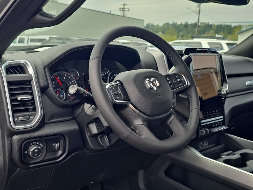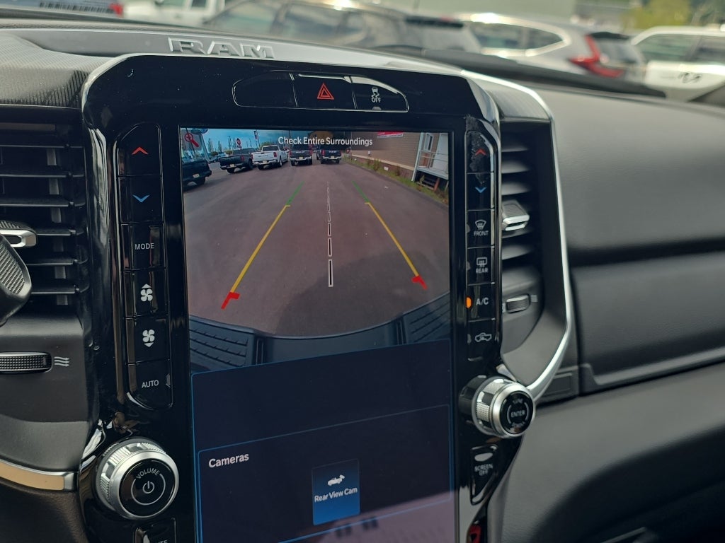 Quick Order Package 24Z Big Horn. Night Edition: Firestone Brand Tires; Gloss Black Nostrils/mic Black Grille; LT285/60R20E OWL On/off Road Tires; Black Exterior Truck Badging; 20" X 8.0" Black Painted Aluminum Wheels; Body Color Grille-Surround; Black Interior Accents; Black Wheel Center Hub; Painted Front Bumper; Painted Rear Bumper. Big Horn Level 1 Plus Equipment Group: Google Android Auto; SiriusXM Radio Service; For Details. Visit DriveUconnect.com; For More Info. Call 800-643-2112; Integrated Voice Command with Bluetooth®; Emergency Vehicle Alert System (EVAS); 12" Touchscreen Display; Glove Box Lamp; Auto Power-Folding Mirrors; Footwell Courtesy Lamp; Anti-Spin Differential Rear Axle; Mirror Running Lights; MOPAR Deployable Bed Step; Alexa Built-In; Apple CarPlay; Power-Adjustable Convex Aux Mirrors; Forward and Reverse Utility Lights; Locking Lower Glove Box; Remote Start System; 9 Alpine Speakers with Subwoofer; Disassociated Touchscreen Display; Dual Glove Boxes; 2nd Row in Floor Storage Bins; Rear View Auto Dim Mirror; Rear Dome with On/off Switch Lamp; LED Bed Lighting; Connectivity - US/Canada; GPS Navigation; 4G LTE Wi-Fi Hot Spot; GPS Antenna Input; Exterior Mirrors with Heating Element; SiriusXM with 360L; Global Telematics Box Module; Connected Travel and Traffic Services; Foam Bottle Insert (door Trim Panel); Black Exterior Mirrors; Big Horn Instrument Panel Badge; Off-Road Info Pages; Selectable Tire Fill Alert; Trailer Tow Pages; HD Radio; Uconnect 5 Navigation with 12.0" Display Radio; Power Heated Folding Telescopic Mirrors; Exterior Mirrors with Supplemental Signals; Steering Wheel Mounted Audio Controls; Exterior Mirrors Courtesy Lamps; Air Conditioning ATC with Dual Zone Control; MOPAR Spray in Bedliner; Power Adjust Mirrors; Luxury Steering Wheel; Power Telescoping Mirrors. Heated Seats and Wheel Group: Heated Front Seats; Heated Steering Wheel. Quick Order Package 2UZ Big Horn. Anti-Spin Differential Rear Axle. Premium Cloth Bucket Seats. Remote Start System. MOPAR Front and Rear Rubber Floor Mats. Power 2-Way Driver Lumbar Adjust. **Equipment listed is based on original vehicle build and subject to change. Please confirm the accuracy of the included equipment by calling the dealer prior to purchase.**