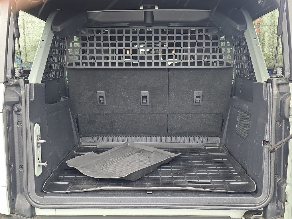 Equipment Group 334A Lux Package: Reverse Sensing System; Connected Built-In Navigation; Power Outlet - Back Side of Center Floor Console; Auto-Dimming Interior Rearview Mirror; Driver and Front Passenger Illuminated Sliding Visor Vanity Mirrors; Evasive Steering Assist; Heated Steering Wheel; 6. 100 lbs GVWR; Additional Sound Deadening; Information on Demand Panel; Wireless Charging Pad; Dual-Zone Electronic Automatic Temperature Control; Ambient Footwell Lighting; Remote Start System; 2-Door Intelligent Access with Lock/unlock; 17" Machined Carbonized Aluminum Wheels; 2 Smart Charging USB Ports in Dashboard; 12" LCD Capacitive Touchscreen with Swipe Capability; Front Row Heated Seats; Adaptive Cruise Control; B&O Sound System by Bang and Olufsen; Enhanced Voice Recognition; Forward Sensing System; 360-Degree Camera; LT285/70R17 A/T Tires; Universal Garage Door Opener; Sideview Mirrors. Ford Co-Pilot360: Auto High-Beam Headlamps; Rear View Camera; Pre-Collision Assist with Automatic Emergency Braking; Blind Spot Information System (BLIS); Lane-Keeping System. SASQUATCH PACKAGE: High Clearance Fender Flares; High Clearance Suspension; Position-Sensitive Bilstein Shock Absorbers. Leather-Trimmed/vinyl Bucket Seats. Molded-In-color Hard Top. Connected Built-In Navigation. Towing Capability. Front and Rear Floor Liners. Wheel Lock Kit. **Equipment listed is based on original vehicle build and subject to change. Please confirm the accuracy of the included equipment by calling the dealer prior to purchase.**