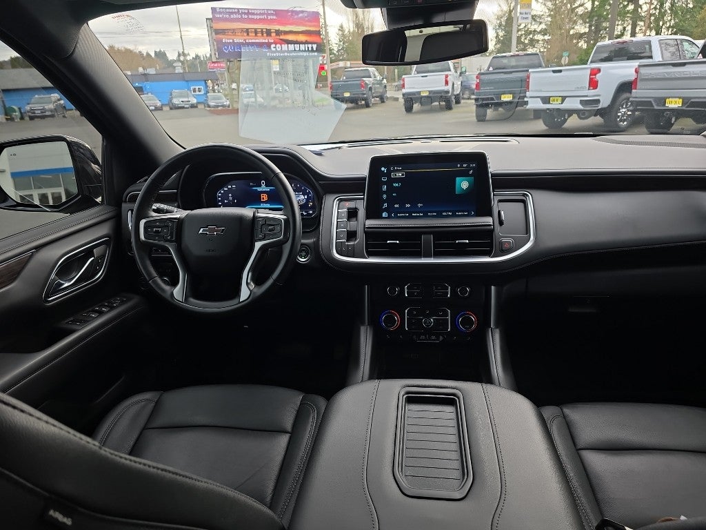 - Preferred Equipment Group 2Z7: Bright Front and Rear Door Sill Plates; Leather-Appointed Seating; Remote Start; 3.23 Rear Axle Ratio; Hill Descent Control; 20" X 9" Machined Aluminum Wheels; Floor Console with Storage Area; Black Tubular Assist Steps; Heavy-Duty Air Filter; LED Daytime Running Lamps; Electronic 10-Speed Automatic Transmission with Overdrive; Driver and Front Outboard Passenger Airbags; 10-Way Power Driver and Passenger Seat Adjusters; Memory Settings For Driver; Heated Driver and Front Passenger Seats; Wireless Charging; Front Bucket Seats; Universal Home Remote; Colour-Keyed Carpeting Floor Covering; Front Skid Plate; Front High-Approach Angle Fascia; Hands-Free Rear Power Programmable Liftgate; Chevrolet Infotainment 3 Premium System Radio; Bose 9-Speaker Stereo Audio System Feature; 2-Speed Active Electronic Autotrac Transfer Case; 1st and 2nd Row Colour-Keyed Carpeted Floor Mats; Enhanced Driver Information Centre; Red Recovery Hooks; SiriusXM Radio with 360L; Wrapped Steering Wheel; 275/60R20SL AT BW Tires; 7